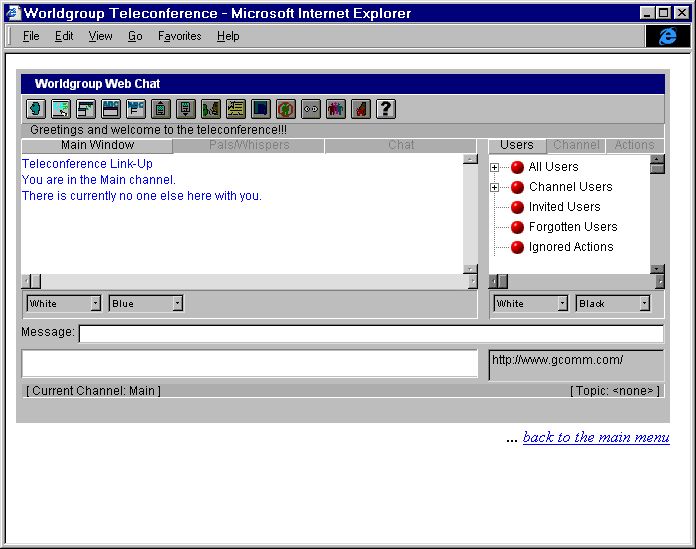 When you first load the applet, the first screen you see is the Chat Window: