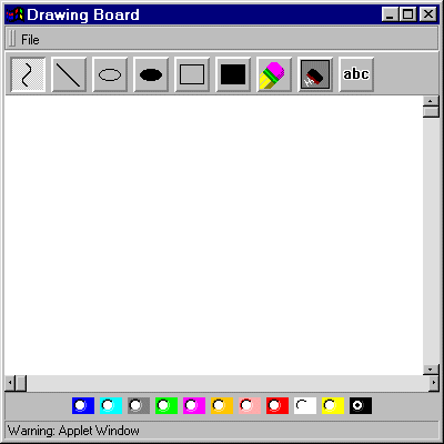 The Drawing Board, sometimes called a White Board, loads as a top-level window. You can use this to draw different shapes, fonts and colors. Your drawing is then transmitted to all other users on the system that have the Drawing Board open.