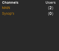 This is a list of channels that you have access to. A channel can also be termed a 'room'. It's simply a gathering place for users to talk to each other. A channel will often have a specific purpose or topic. An example of this is a channel called 'StarTrek' where users discuss the show. All the displayed channels are hyperlinked so that you can click on a channel and are automatically switched to the channel. You can place your cursor over a channel in the list, the channel topic and number of users in the channel are displayed in a Tooltip. |