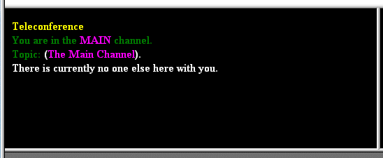 The Message Frame displays all messages from the system and other users (that are visible to you), including your own. Any URLs that are embedded in messages are automatically shown as a hyperlink. When you click on a hyperlink, it is launched in another browser window. The teleconference remains constantly connected to the server. You should not attempt to refresh this frame because your session will fail and you will have to reload the teleconference using your browser's refresh/reload button.